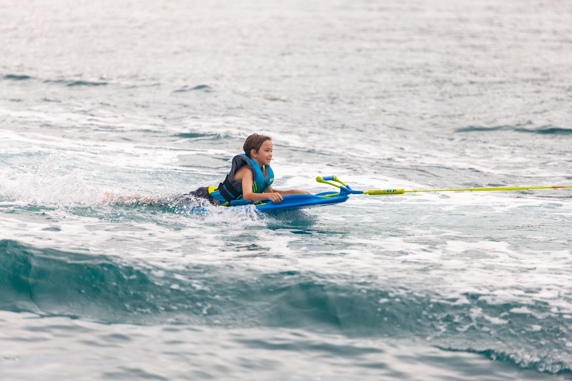 This board offers riders of all abilities the chance of immediate success and fun at a more affordable cost! This newest addition to the multi-sport family is our YouGotThis160, Sure to be their "most fun toy behind the boat", this board has all the "things". It's unique shape and design, paired with molded-in side-handles and an easy-connect tow hook (for our safer DoubleZUP Handle & Rope), gives you the next most popular LAY, KNEEL, STAND, Do-It-All board on the Tow market!